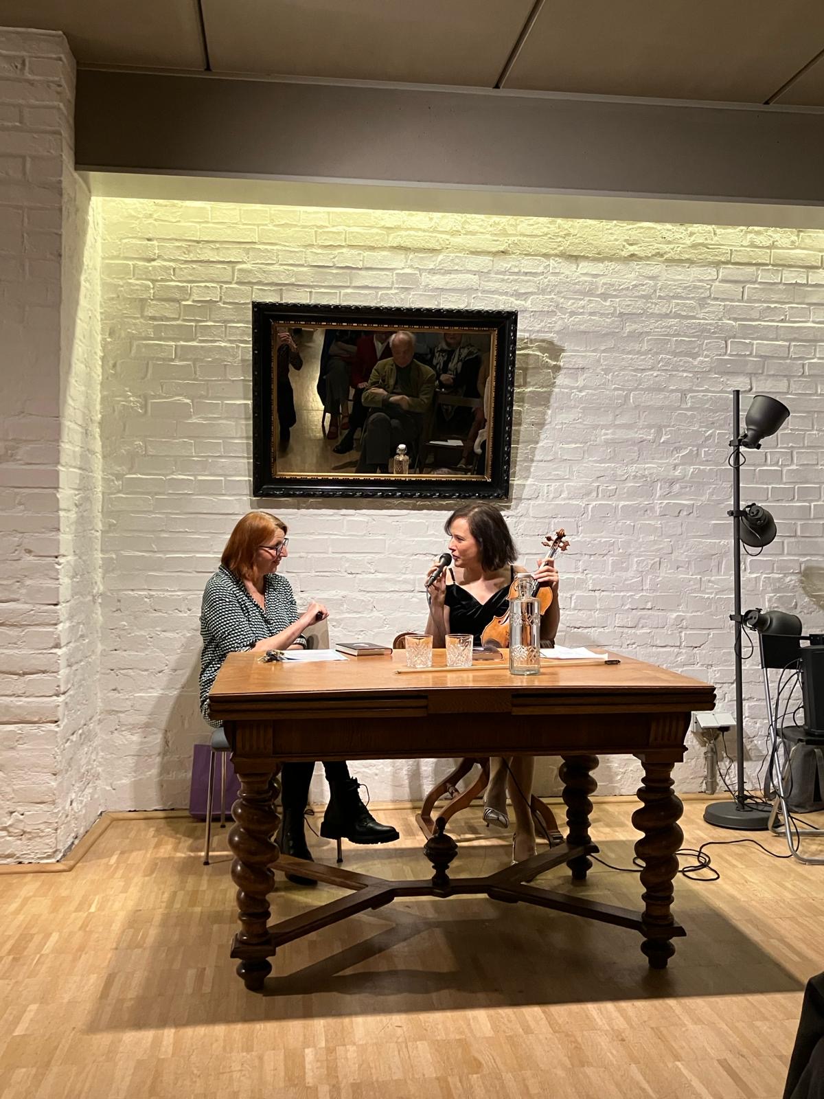 Es war ein ganz besonderer Abend im KunstSalon im Rahmen von „Literatur und Musik in den Häusern der Stadt“. Natasha Korsakova, Soloviolinistin und Krimiautorin, brachte sowohl ihre Geige als auch ihren aktuellen Krimi, erschienen im Septime-Verlag, mit und schenkte und ein großartiges Hörerlebnis. In ihrem neuen Krimi geht es wieder um den Commissario Di Bernardi, der in Rom Mordfälle im Musikermilieu aufzuklären hat und im Gespräch mit Ulla Egbringhoff erzählte sie aufschlussreich über ihre Recherchen, denn in diesem Roman geht es um seltene Hölzer, die für den Geigenbogen nötig sind.