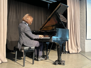 Ein besonderes Highlight des Vormittags war die Aufführung der Beethoven-Sonate 111. Wir danken sehr dem Pianisten Georgy Voylochnikow, der uns diese Sonate formidabel präsentierte. Es war ein besonderes Erlebnis zunächst die Ausführungen Frido Manns über dieses Beethoven-Werk zu hören, das auch einen zentralen Platz im “Doktor Faustus“ von Thomas Mann einnimmt, und sie dann so wunderbar interpretiert zu bekommen. Großer Dank an Georgy Voylochnikow!