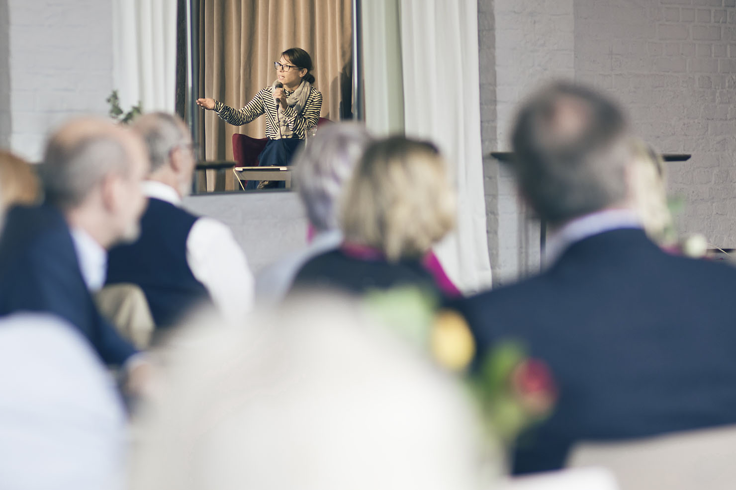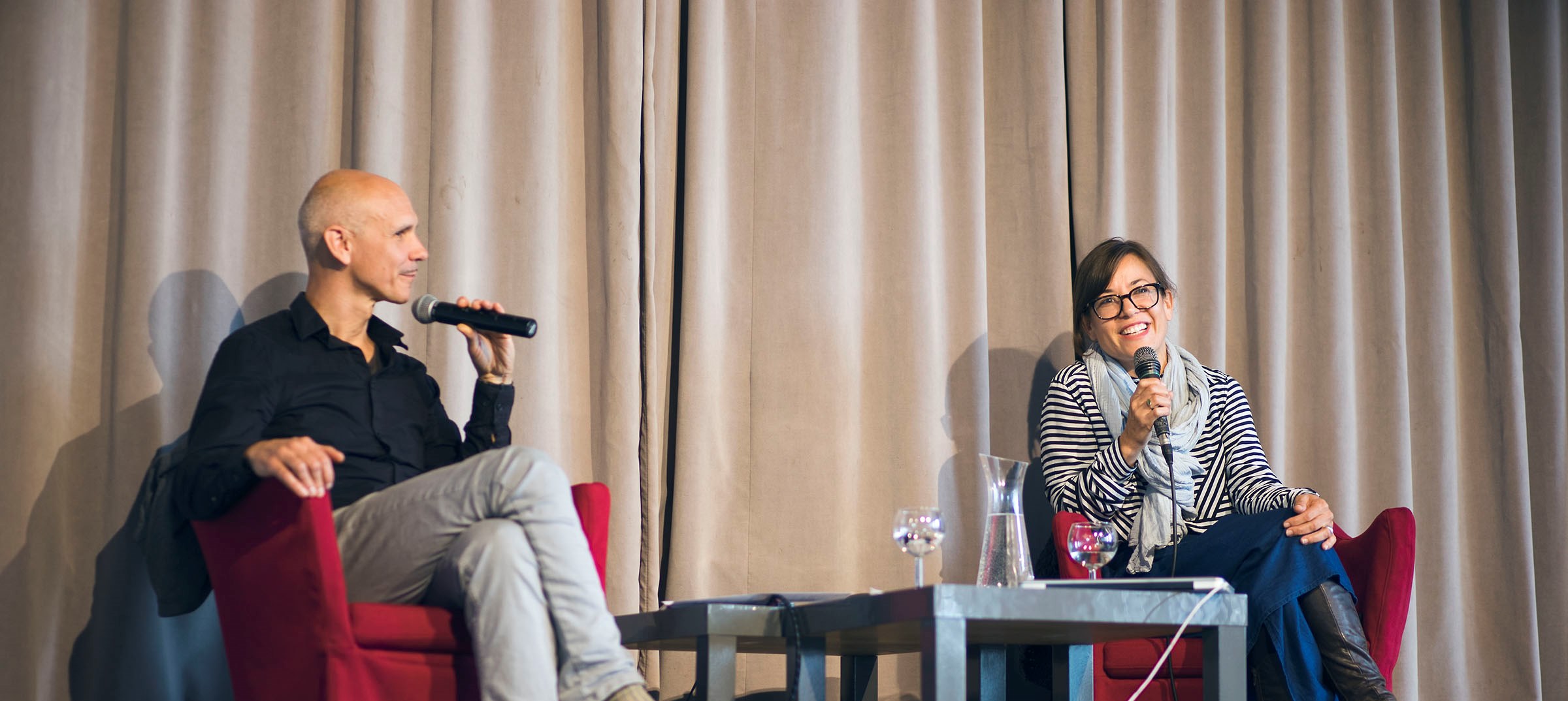 Im Werkstattgespräch mit Christian Meyer-Pröpstl, dem Programmleiter der filmsociety, erzählte die 1979 in Stuttgart geborene Filmemacherin von ihrem Werdegang – vom Studium in Vancouver, Regie-Assistenzen bei so unterschiedlichen Regisseuren wie Dominik Graf und Romuald Karmakar und ihrem Studium an der Kunsthochschule für Medien Köln (KHM), das sie schließlich an die Rheinmetropole brachte. Noch im Studium war sie an dem Drehbuch des erfolgreichen Kinofilms „Gegenüber“ (2007) von Jan Bonny beteiligt, drehte 2009 ihren Abschlussfilm mit dem noch recht unbekannten Lars Eidinger und war als Co-Autorin verantwortlich für den 2015 für einen Grimme-Preis nominierten Fernsehfilm „Es ist alles in Ordnung“. Den jour fixe-Gästen erzählte sie spannende Details zu ihrer künstlerischen Tätigkeit – von der Ideenfindung bis zur Realisierung eines fertigen Films. Im Zentrum des Gesprächs stand ihr erster langer Spielfilm „Die Sterne über uns“ (Arbeitstitel), den sie im Sommer in Köln drehte und an dessen Schnitt sie gerade arbeitet. Zur Veranschaulichung ihrer Arbeit zeigte sie nicht nur einen Ausschnitt aus ihrem Abschlussfilm „Wanna be“ mit Lars Eidinger, sondern auch exklusiv eine Testaufnahme ihres aktuellen Projektes, anhand der sie die ästhetische Handschrift des Films erläuterte.