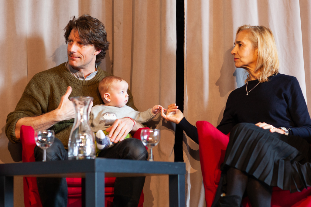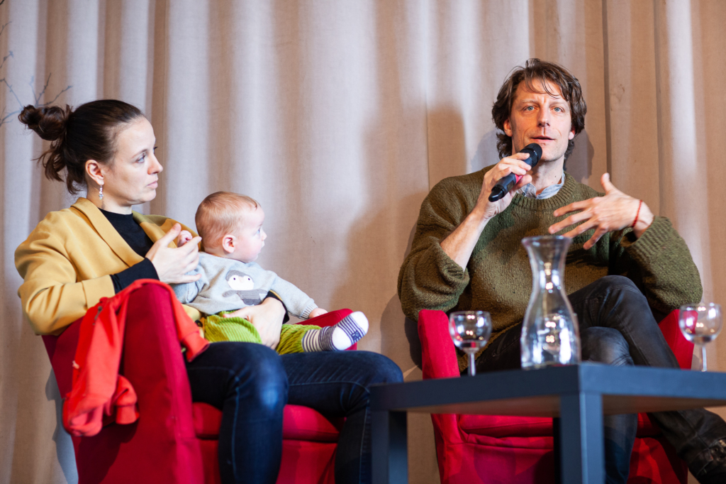 Als Tochter der international arrivierten Tänzer Malou Airaudo und Dominique Mercy (langjährige Mitglieder des Pina Bausch Ensembles) wurde Thusnelda Mercy quasi in den Tanz hineingeboren. Uns ermöglichte sie sehr private Einblicke in ihre frühesten Berührungspunkte mit der Kunst und schilderte, wie sie im Laufe der Zeit (auch gemeinsam mit Pascal Merighi) ihren eigenen künstlerischen Weg gefunden hat. Ihr Partner Pascal Merighi erzählte von Meilensteinen seines Werdegangs, u.a. als Tänzer für das Tanzforum Köln unter Choreograf Jochen Ulrich sowie seiner Arbeit in der Förderung junger Tänzer. So schlugen sie den Bogen von der Arbeit als Tänzer in großen Produktionsstrukturen unter Choreografen wie Pina Bausch, Sasha Waltz und Jochen Ulrich bis hin zum freien Produzieren mit der eigenen Kompanie in der zeitgenössischen Tanzszene.