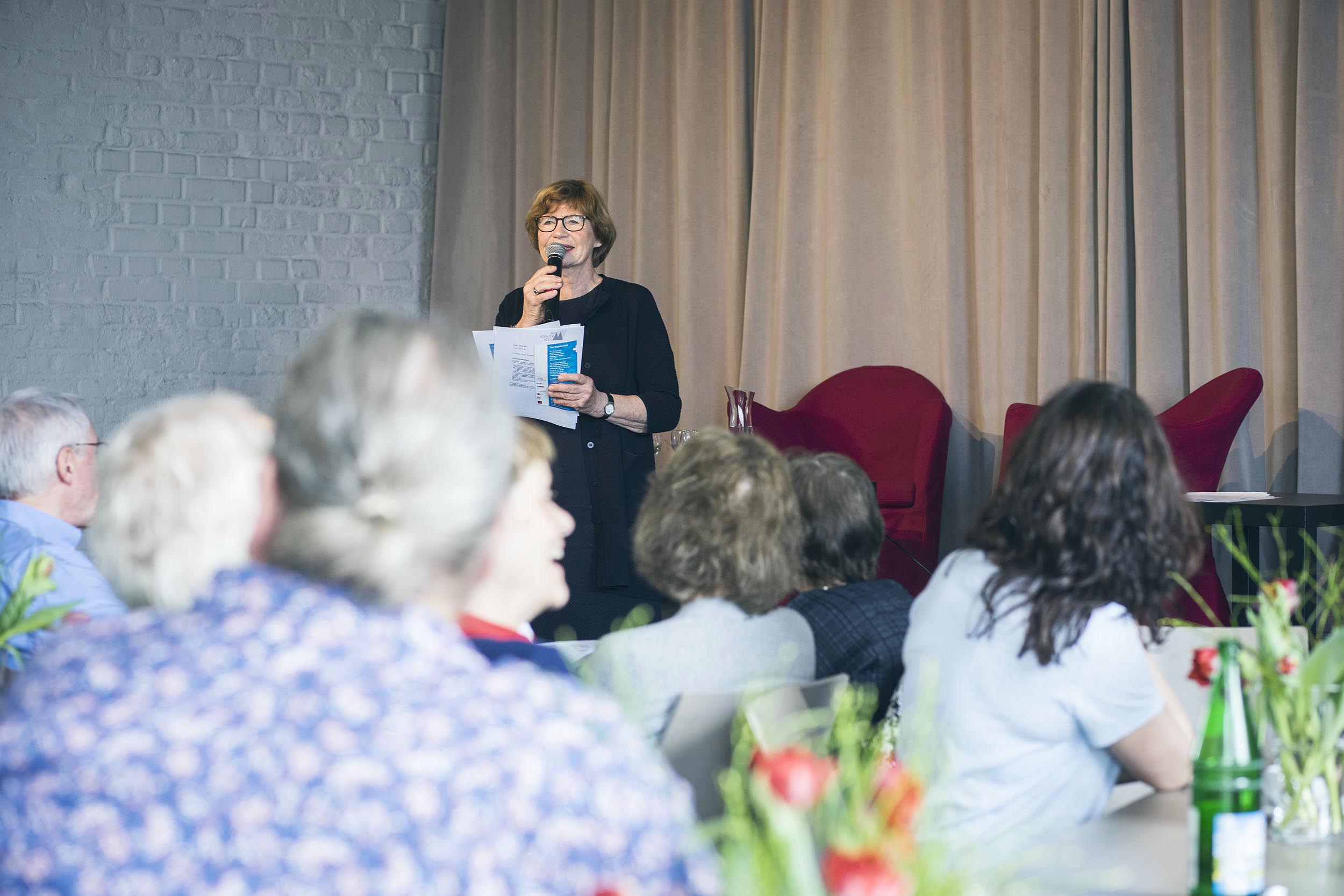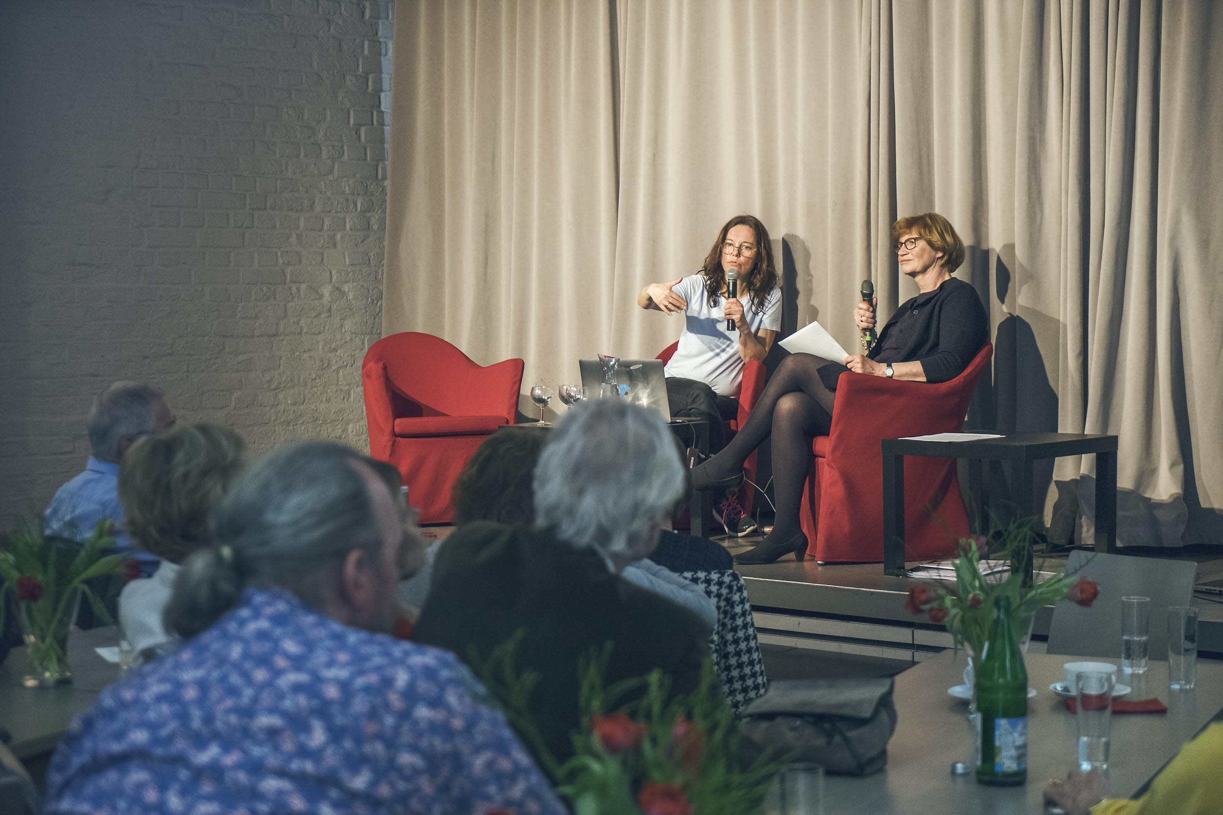 Nach dem gemeinsamen Frühstück und den aktuellen kulturpolitischen Nachrichten, die Dr. Hermann Hollmann (Kulturrats-Vorsitzender und Mitglied des Vorstands des KunstSalon e.V.) mit uns teilte, stellte Barbara Hosmann zunächst Prof. Beate Gütschow vor. In der Nachfolge des langjährigen Kunstprofessors Jürgen Klauke leitet sie seit 2011 den Bereich der künstlerischen Fotografie an der Kunsthochschule für Medien Köln (KHM). In dem sich daran anschließenden Gespräch führte Beate Gütschow in die verschiedenen Werkzyklen ihrer Arbeit ein, von eindrucksvollen, quasi idealtypischen, arkadischen Landschaftsaufnahmen über städtische Dystopien hin zu ganz konkreten, ortsbezogenen Arbeiten zu ihrem Atelierstandort in Berlin.