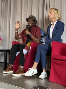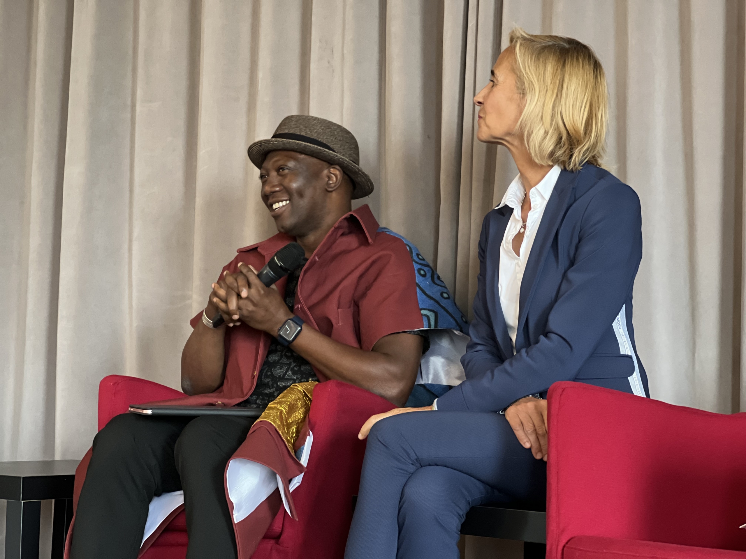 Mit unserem Gast Serge Aimé Coulibaly, dessen Stück „Wakatt“ in Köln zu sehen sein wird, haben wir einen Tänzer und Choreografen kennen gelernt, der uns mit seinem Charme und seinen lebhaften Ausführungen zu seiner Arbeit – in Burkina Faso, in ganz Europa begeisterte. Im Gespräch mit Kerstin Ortmeier, der Künstlerischen Leiterin von Africologne, erzählte er u.a. von den Auswirkungen der Corona-Pandemie auf seine Arbeit – eine positive Folge war, dass er Zeit bekam, neue Akzente zu setzen. Wir bedanken uns sehr für diesen schönen Vormittag mit den humorvollen Beschreibungen seiner Arbeit als Choreograf und Tänzer!