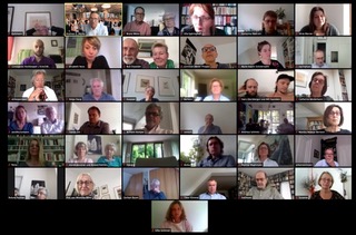 Es war der erste virtuelle jour fixe im KunstSalon: Unser monatliches Treffen fand diesmal vor den heimischen Computern statt. Die Aufregung war groß, wird es mit der Technik klappen? Siehe da, es hat! Über 60 Mitglieder haben teilgenommen und verfolgten das Programm, durch das unser Vorstandsvorsitzender Andreas C. Müller führte.