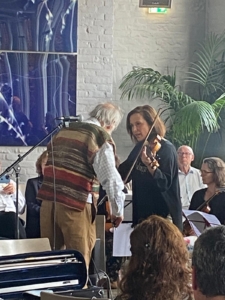 Eine Kleien Besonderheit: zur großen Überraschung war die Geigerin Natasha Korsakova unter den Gästen, die sich spontan eine Geige auslieh und gemeinsam mit Klaus dem Geiger das Ave Maria spielte. Es war ein wunderbarer Nachmittag mit unserem Orchester! Hier ein paar Impressionen:
