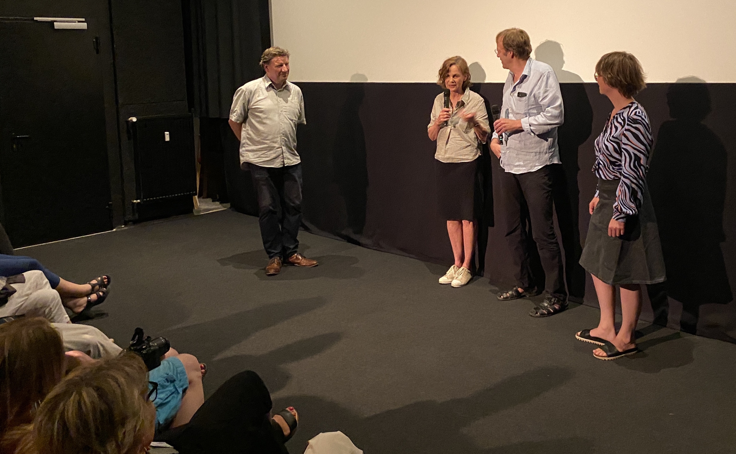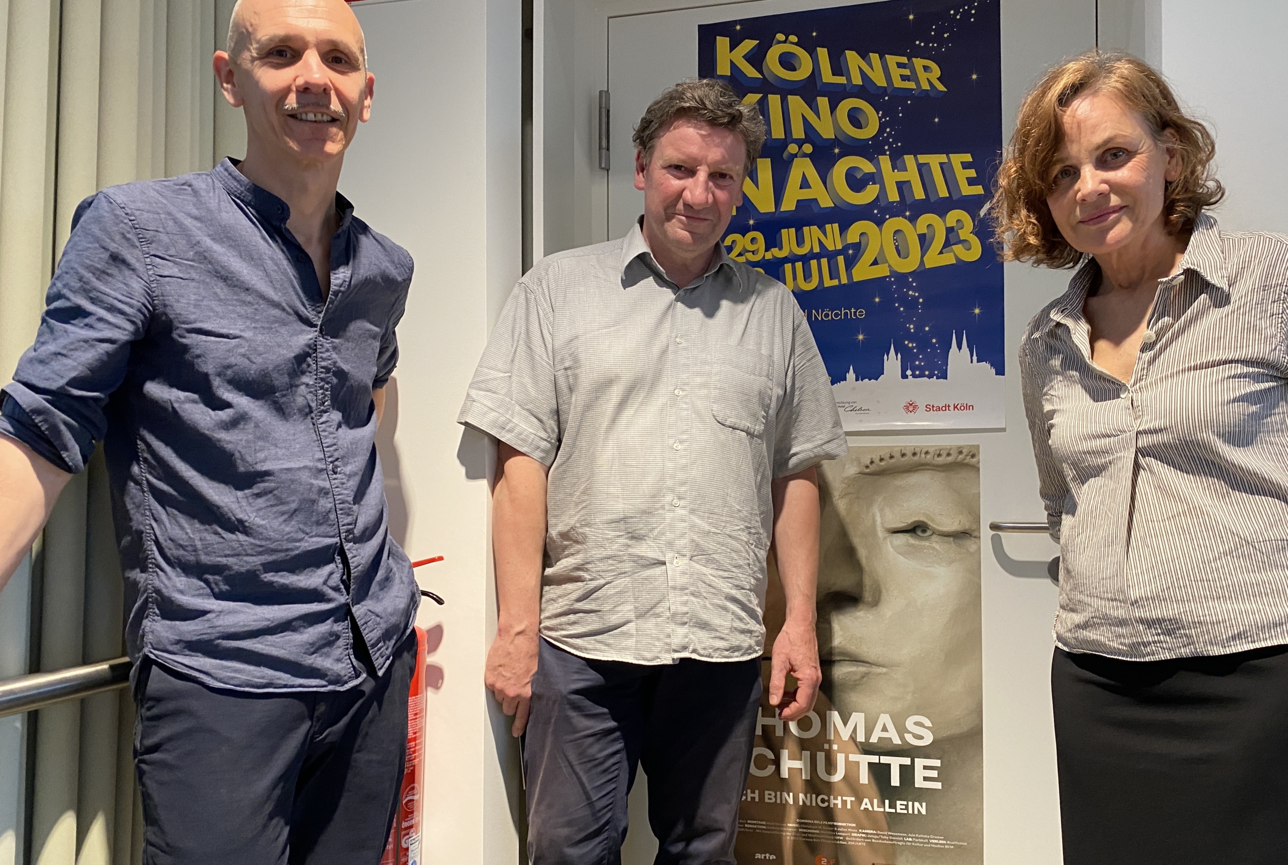 Zur Eröffnung der vom 29. Juni bis zum 2. Juli stattfindenden Kölner Kino Nächte – die Leistungsschau der Kölner Kinoszene – hat die filmsociety in Kooperation mit dem Verleih Real Fiction im ausverkauften Filmhaus Kino den neuen Film von Corinna Belz, „Thomas Schütte – Ich bin nicht allein“, präsentiert. Corinna Belz war zuletzt mit ihrem Film „In den Uffizien“ im Herbst 2022 bei der filmsociety zu Gast. Dieses Mal hatte Sie für das anschließende Filmgespräch vor ausverkauftem Saal als Überraschungsgäste die Kamerafrau Jule Katinka und den Editor Rudi Heinen mitgebracht. Gemeinsam stellten sie sich den Fragen des Real Fiction-Verleihchefs Joachim Kühn und des Publikums, das sich sehr für die ungewöhnliche Perspektive auf die Werkstätten, mit denen der Düsseldorfer Künstler, der vor allem als Bildhauer tätig ist, zusammenarbeitet. So zeigt der Künstlerfilm neben der Arbeit am Zeichentisch oder auch im Büro vor allem die Zusammenarbeit mit Gießereien, Glasbläsern oder Tonwerkstätten. Wie schon in ihren früheren Filmen über u.a. Gerhard Richter, Schüttes Lehrer in den 1970er Jahren an der Düsseldorfer Kunstakademie, zeigt sich die Regisseurin als konzentrierte und genaue Beobachterin jenseits von weihevoller Lobhudelei.