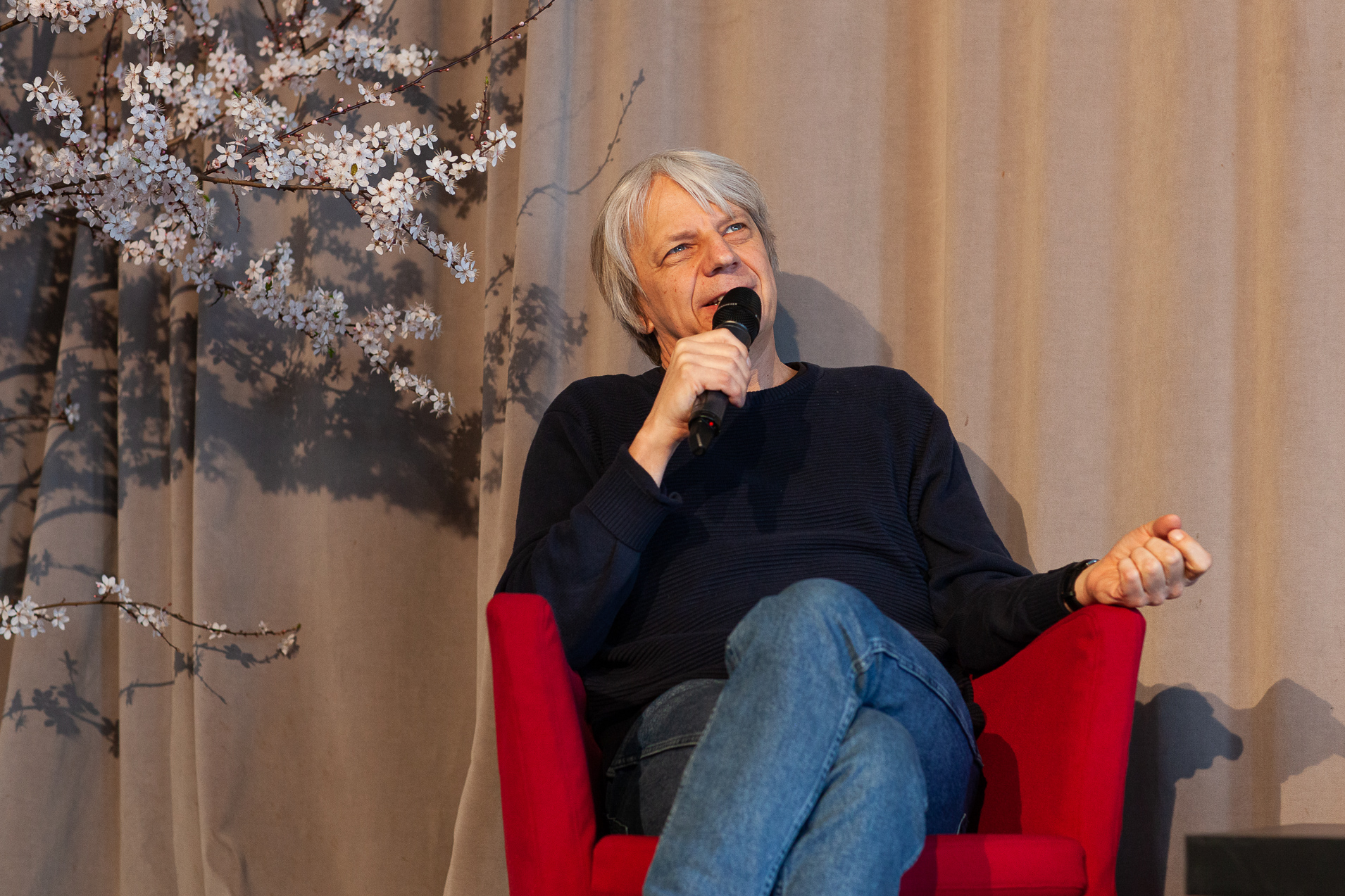 Am Sonntagvormittag fand dann im Saal des KunstSalon das traditionelle Werkstattgespräch „Rendezvous mit …Christian Petzold“ statt. Wilfried Reichart sprach 90 kurzweilige Minuten lang mit dem renommierten Regisseur („Die innere Sicherheit“, „Yella“, „Transit“) über seine Themenwahl, die Beständigkeit seiner Filmcrew, die Zusammenarbeit mit seinem Lehrer und Freund Harun Farocki und die vielen kulturellen Einflüsse und Inspirationen für seine Filme, von der Literatur bis zum Film, von Alfred Hitchcock bis zu Anna Seghers.